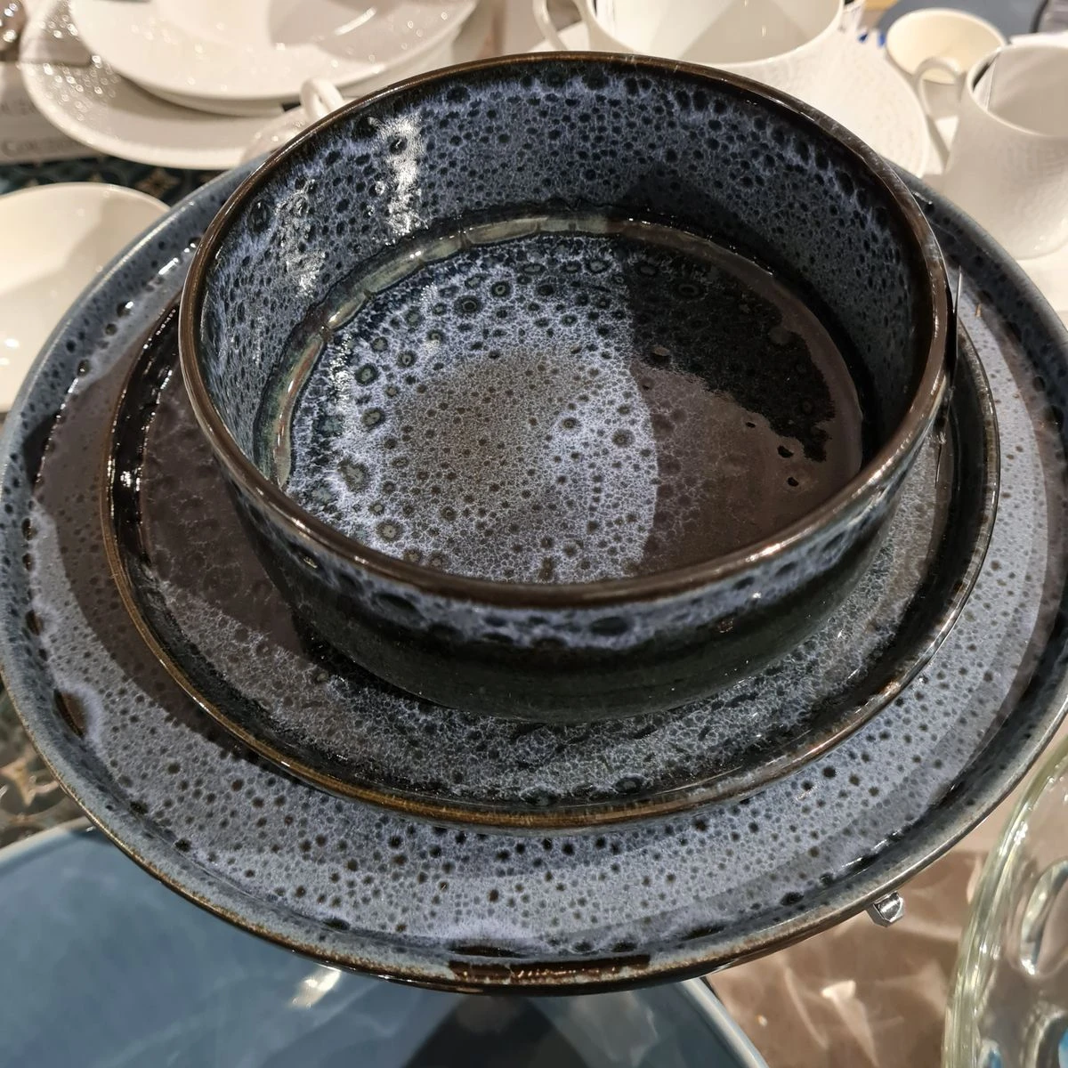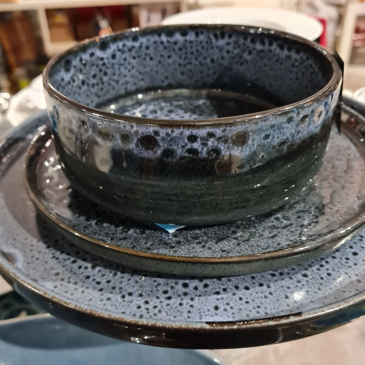La profondeur nuancée du bleu nuit tacheté de marron apportera un caractère élégant à votre table.