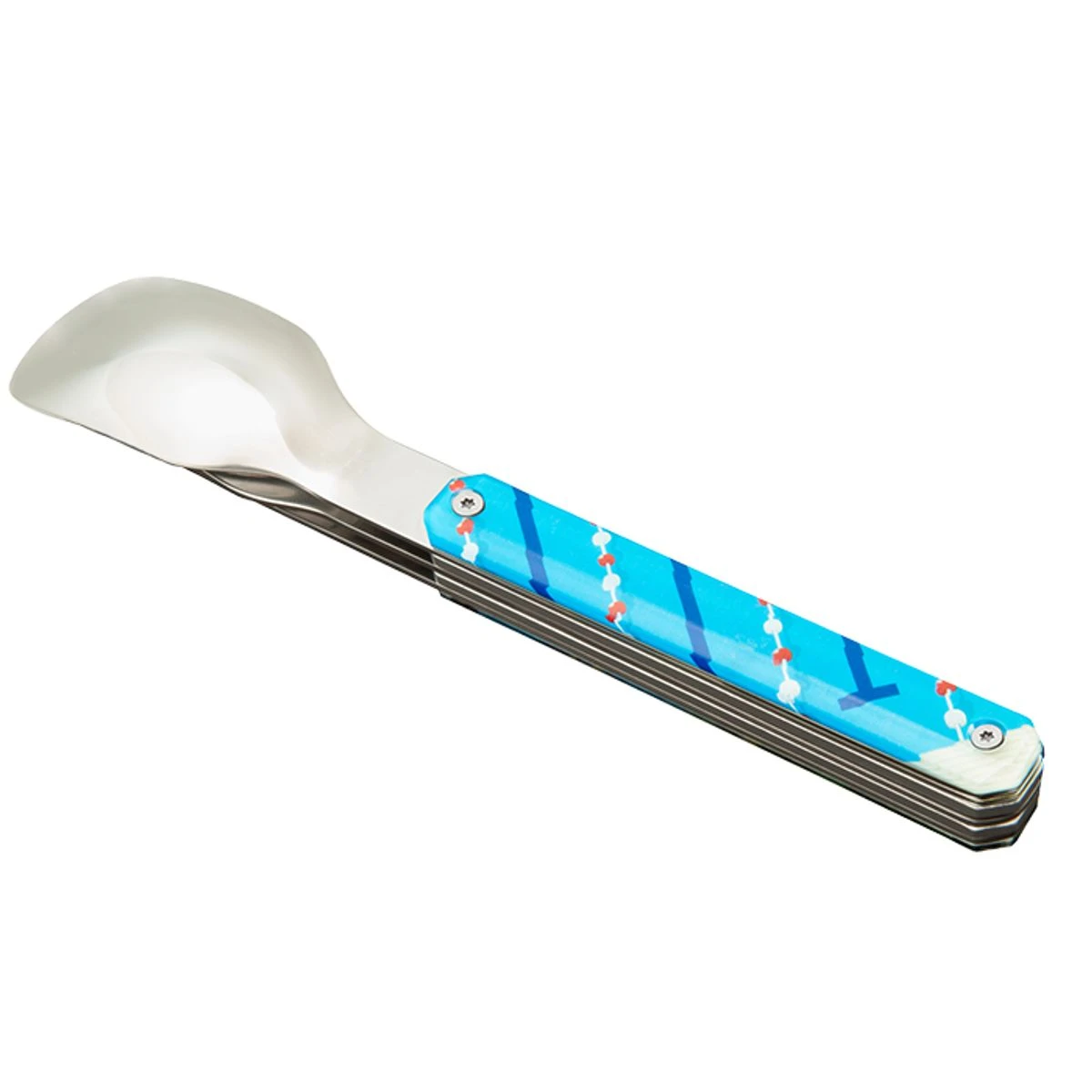 Après une bonne brasse ou lors d’un pique-nique, ces couverts aimantés s’accompagnent de tous les reflets bleutés du grand bain, reboosté pour replonger dans une après-midi mouvementée.