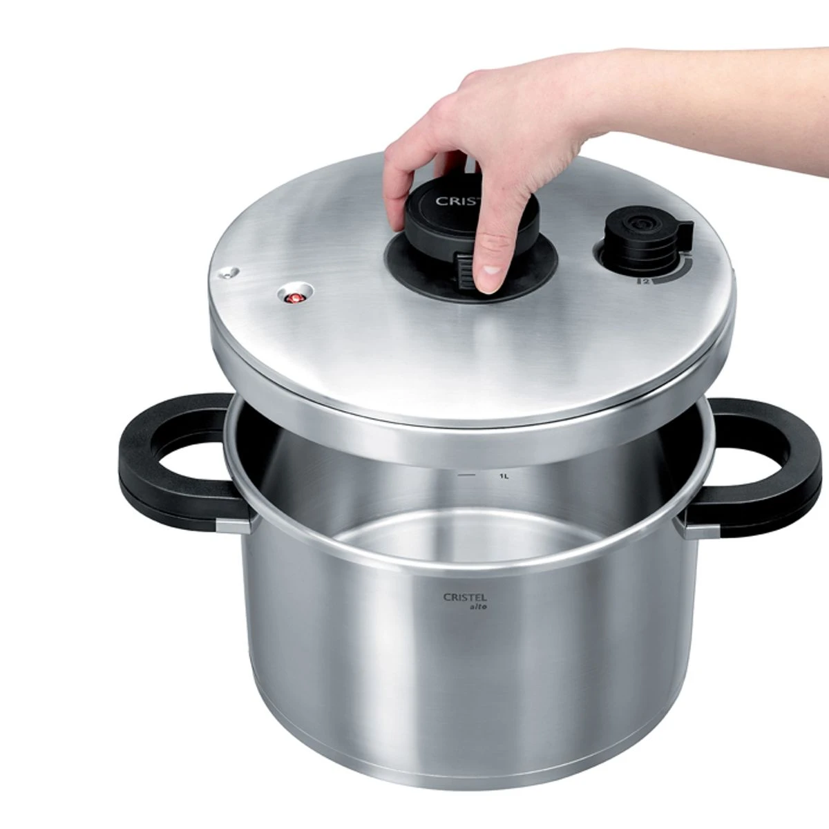 Pratique son couvercle inox permet de passer sous l’eau du robinet pour faire descendre la pression plus rapidement