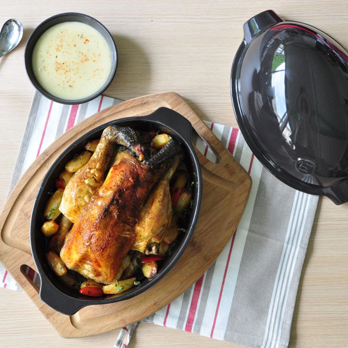Sa forme unique permet une diffusion excellente de la chaleur pendant la cuisson : la viande est tendre et moelleuse tandis que la peau est croustillante.