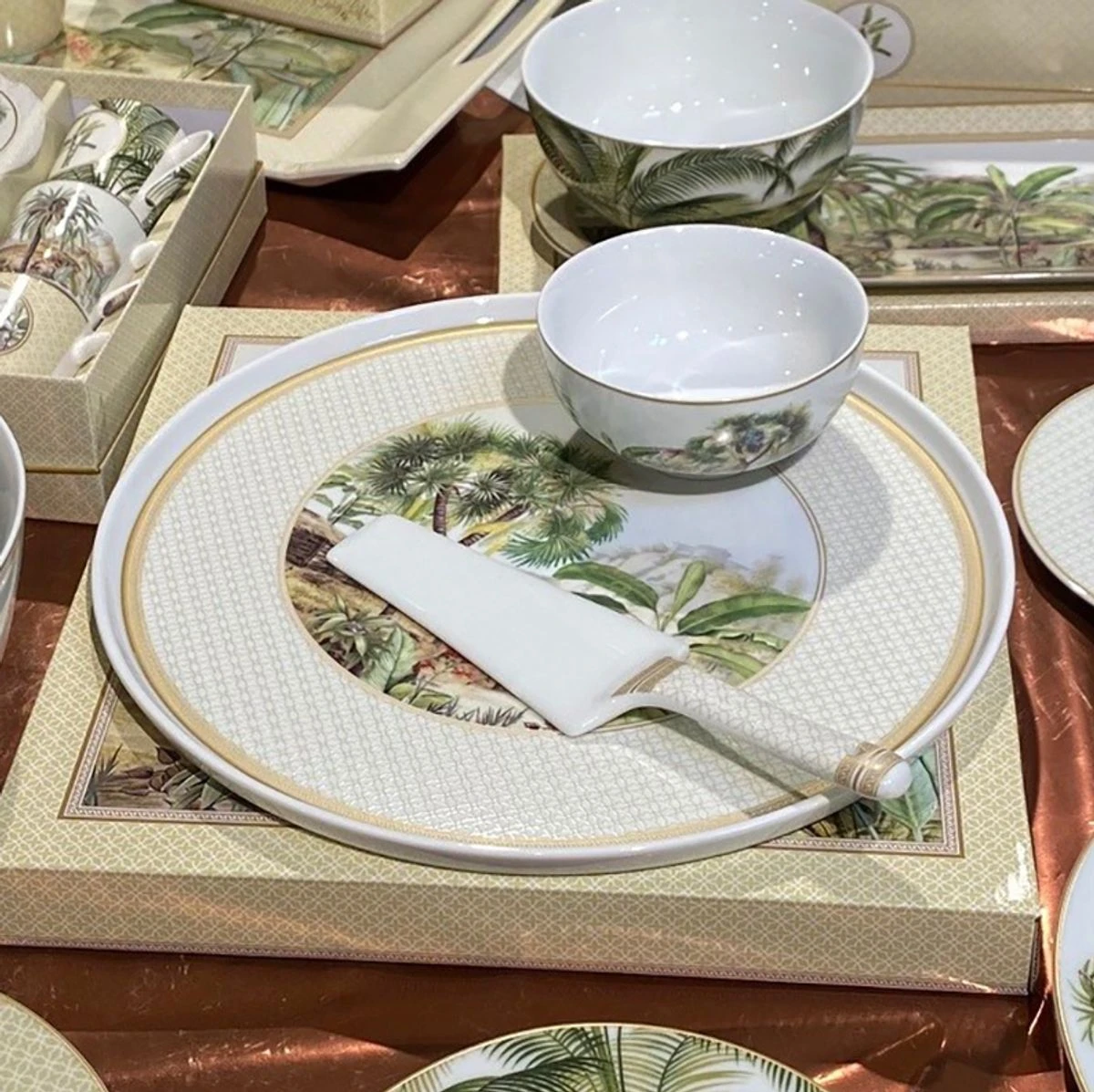 Cette collection est composée de tasses, théières, assiettes, plateaux de service, bols, plats…
