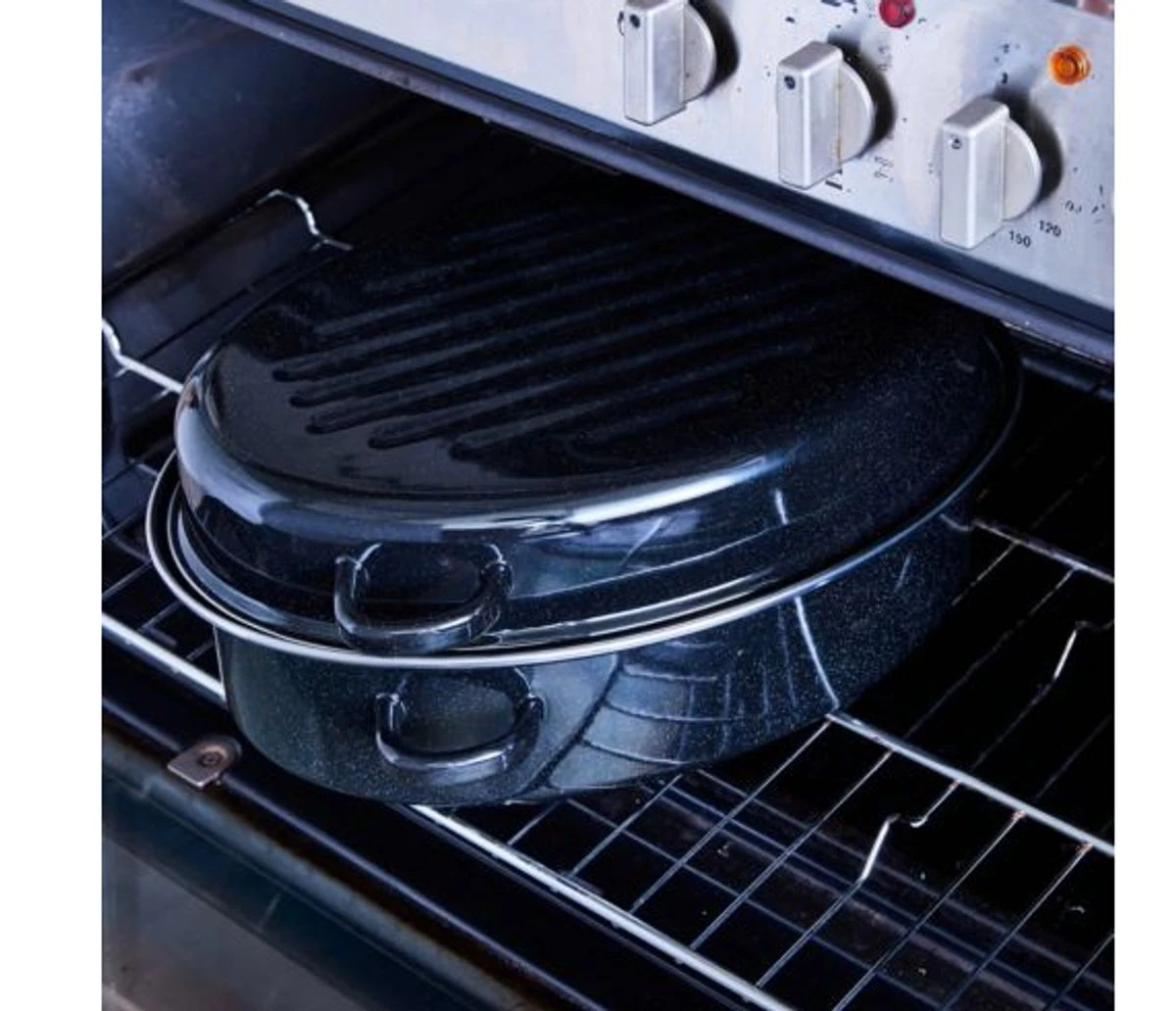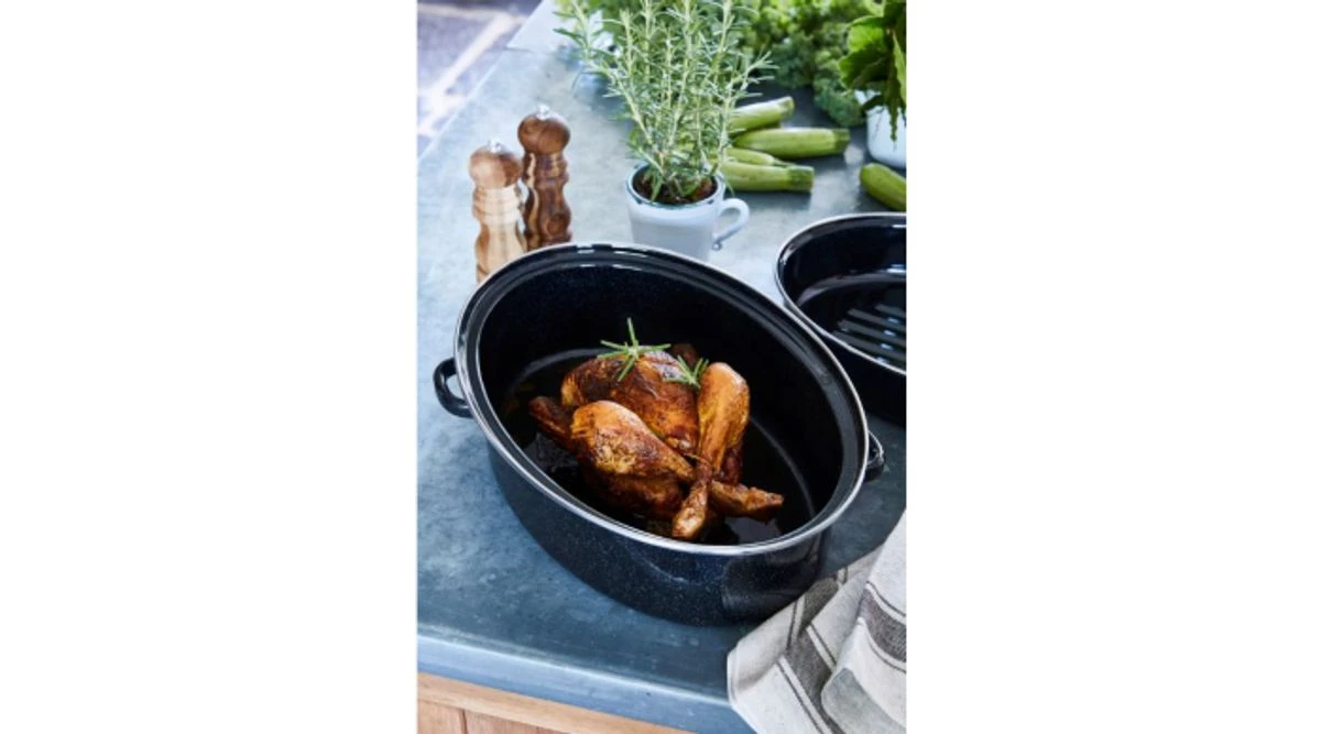 Son couvercle est strié et plat, il permet de recouvrir même les plus grosses volailles.