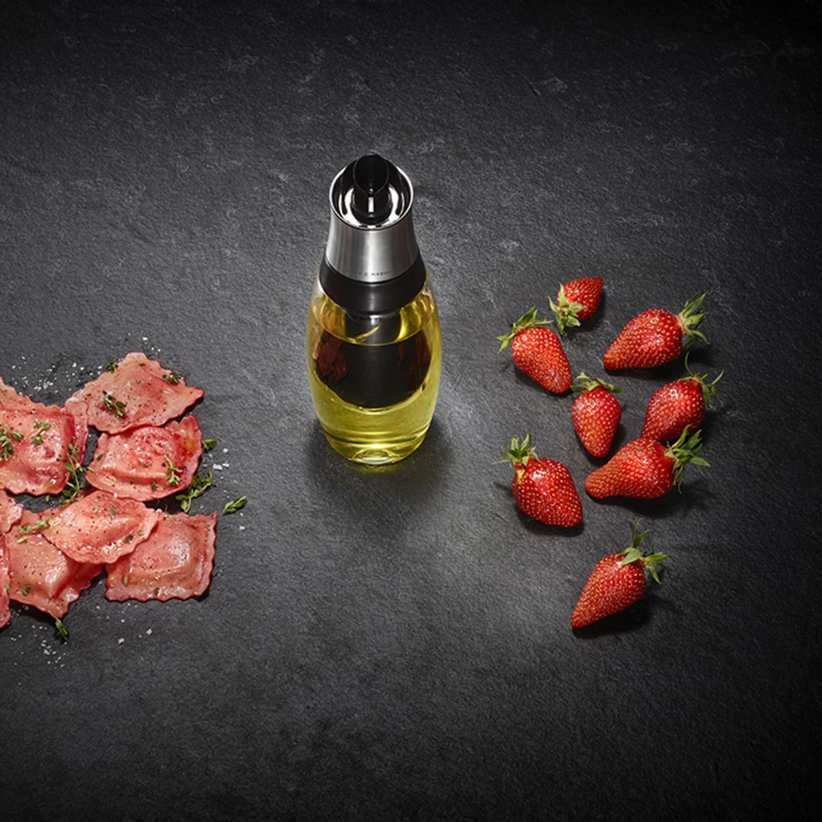 Pratique, cette jolie bouteille Duo huile et vinaigre est muni d’un bouchon Flow Control.