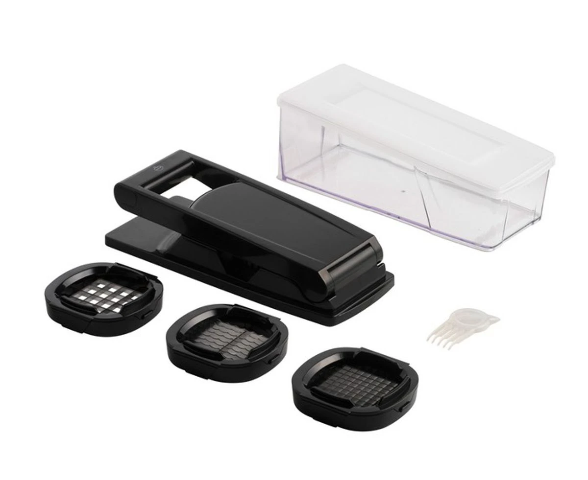 Vendu avec : 3 grilles interchangeables : bâtonnets et dès de 6.8 mm, tranches de 6.8 mm et bâtonnets et dès de 13.6 mm