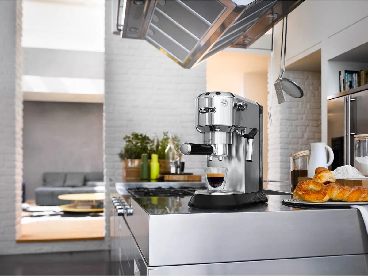 Le nouvel expresso ultra compact de De’Longhi : seulement 14.9 cm de large fait de la DEDICA la plus citadine des machines à café de sa catégorie !