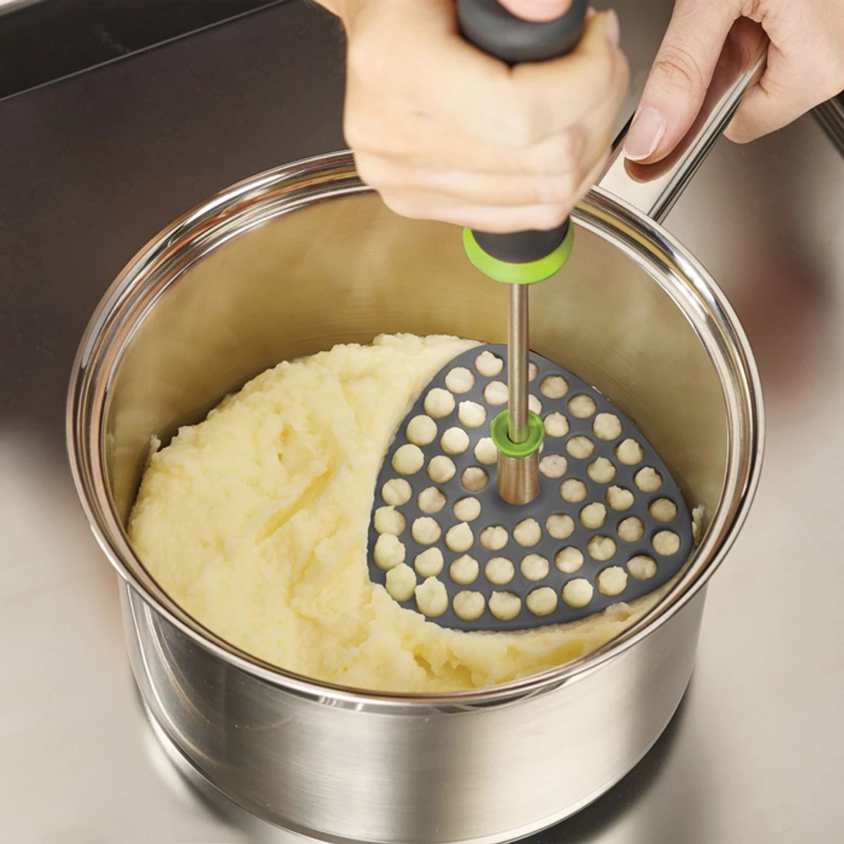 Manche en acier inoxydable avec une bague de blocage pour utiliser le presse-purée en toute sécurité.