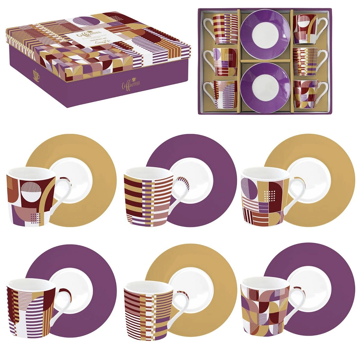 Avec la gamme Geometric Art, revivez l’âge d’or du groove et du disco avec des ensembles de tasses et de mugs en porcelaine blanche fine décorée.