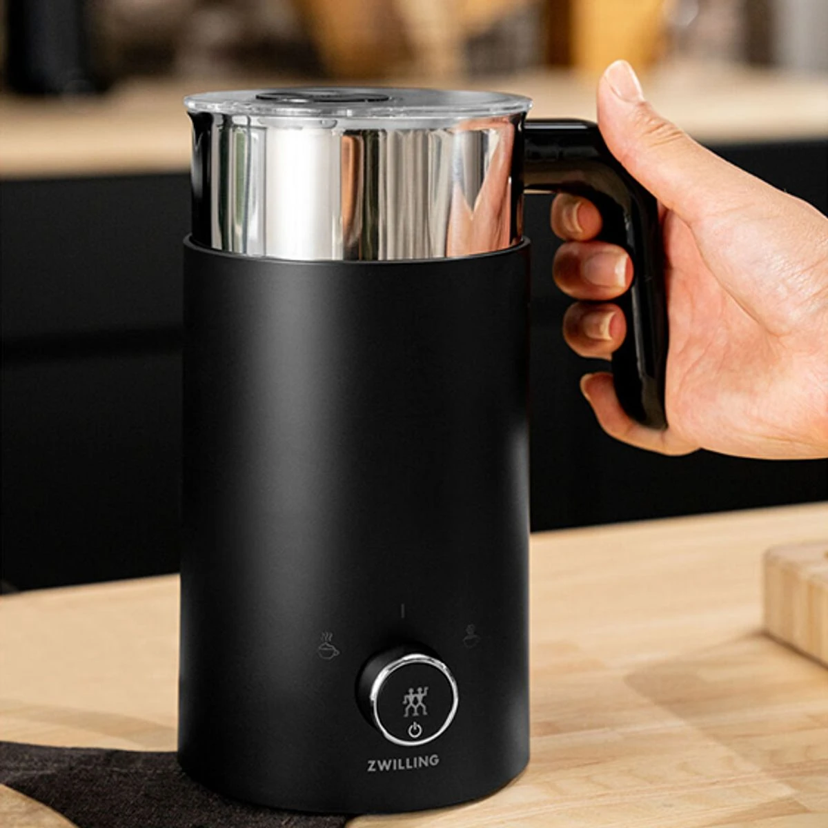 Le mousseur à lait permet d’emulsionner jusqu’à 200 ml de lait chaud ou froid et de réchauffer jusqu’à 400ml de lait.