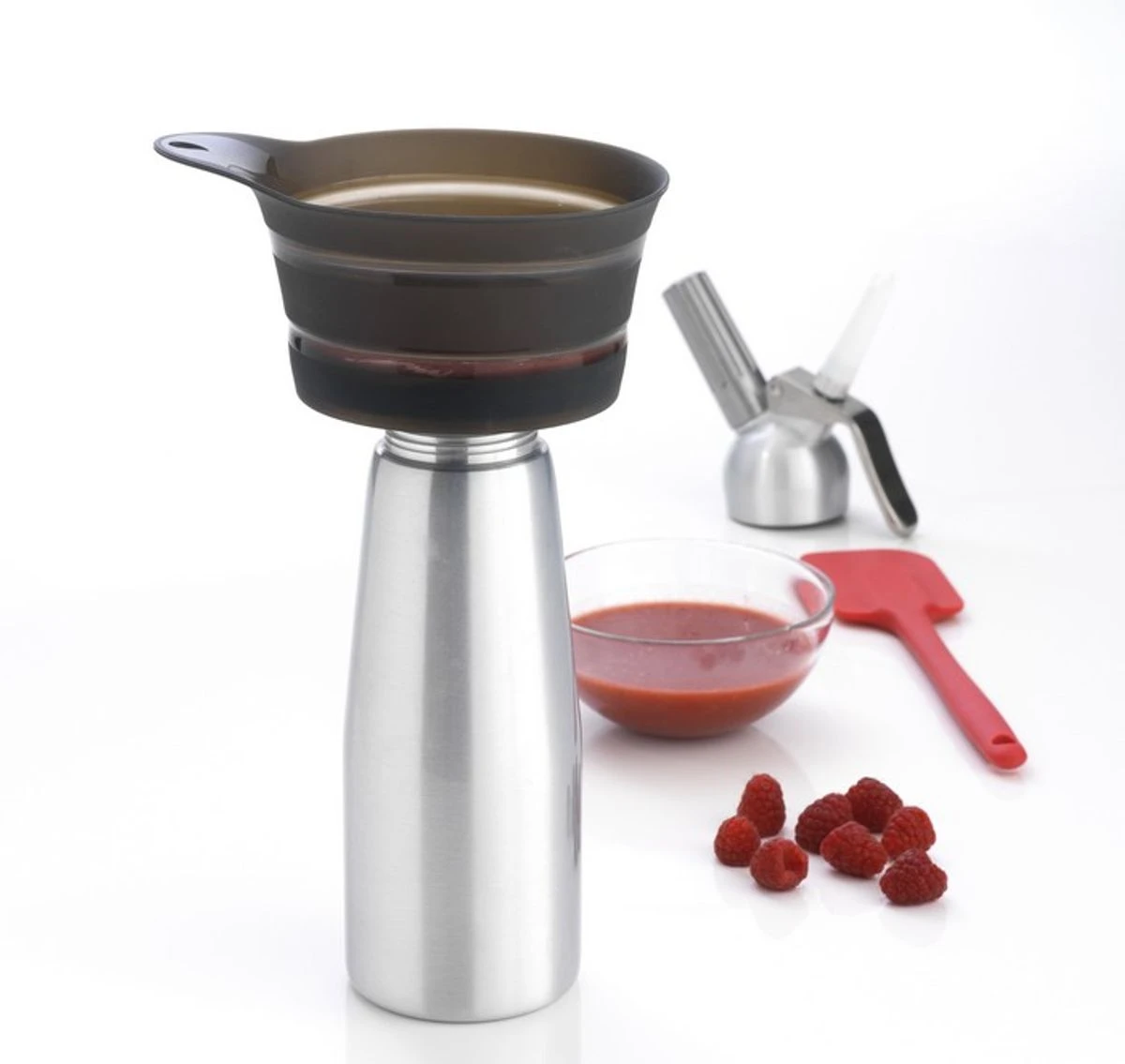 L’adaptateur facilite le remplissage de tous les contenants étroits : siphons, bouteilles…