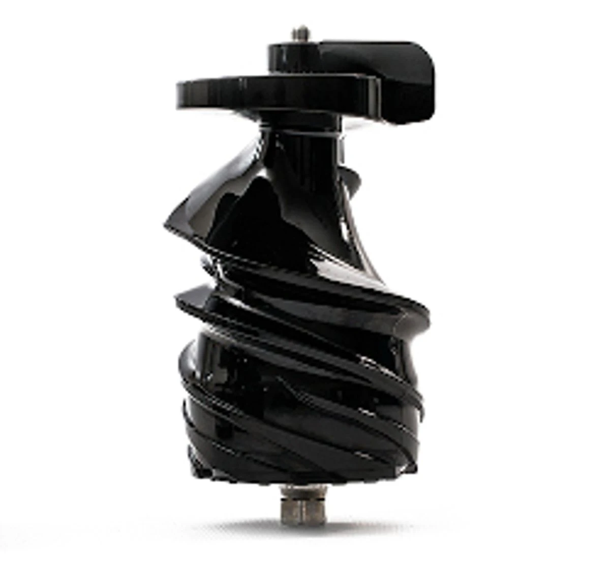 Le filtre du D9900 est doté d’un fond plein qui ne laisse passer aucune fibre dans le jus. Il a aussi été renforcé par rapport à ses prédécesseurs et bénéficie d’une sortie de fibres agrandie pour éviter tout bourrage et faciliter l’extraction. La nouvelle vis de pressage comme sur le 9900 ,creuse en dessous et sans d’engrenage ce qui facilite son nettoyage. La pulpe excédentaire viendra ainsi s’accumuler sous la vis et ne se bloquera jamais.