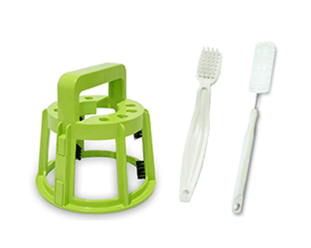Livré avec deux pichets récupérateurs (jus 1L et résidus) parfaitement emboitables, une clé de desserrage de couvercle,une notice d’emploi et un Livre de Recettes, brosse et goupillon de nettoyage, ainsi qu’un accessoire de nettoyage extérieur pour le filtre,
