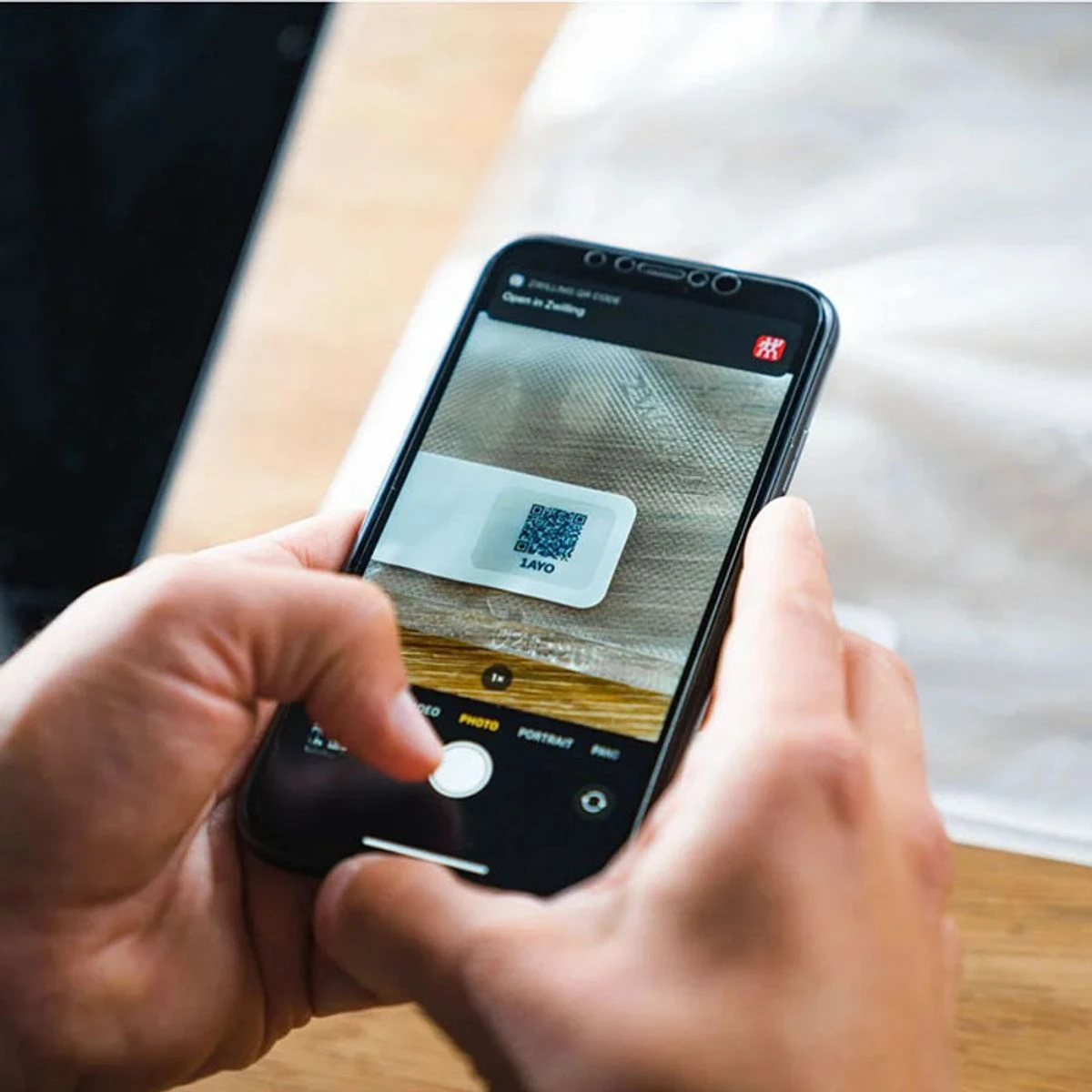 Connexion simple entre les sacs sous vide et l’application ZWILLING Culinary World via le QR code présent sur le sachet pour un suivi des aliments et de la durée de conservation.