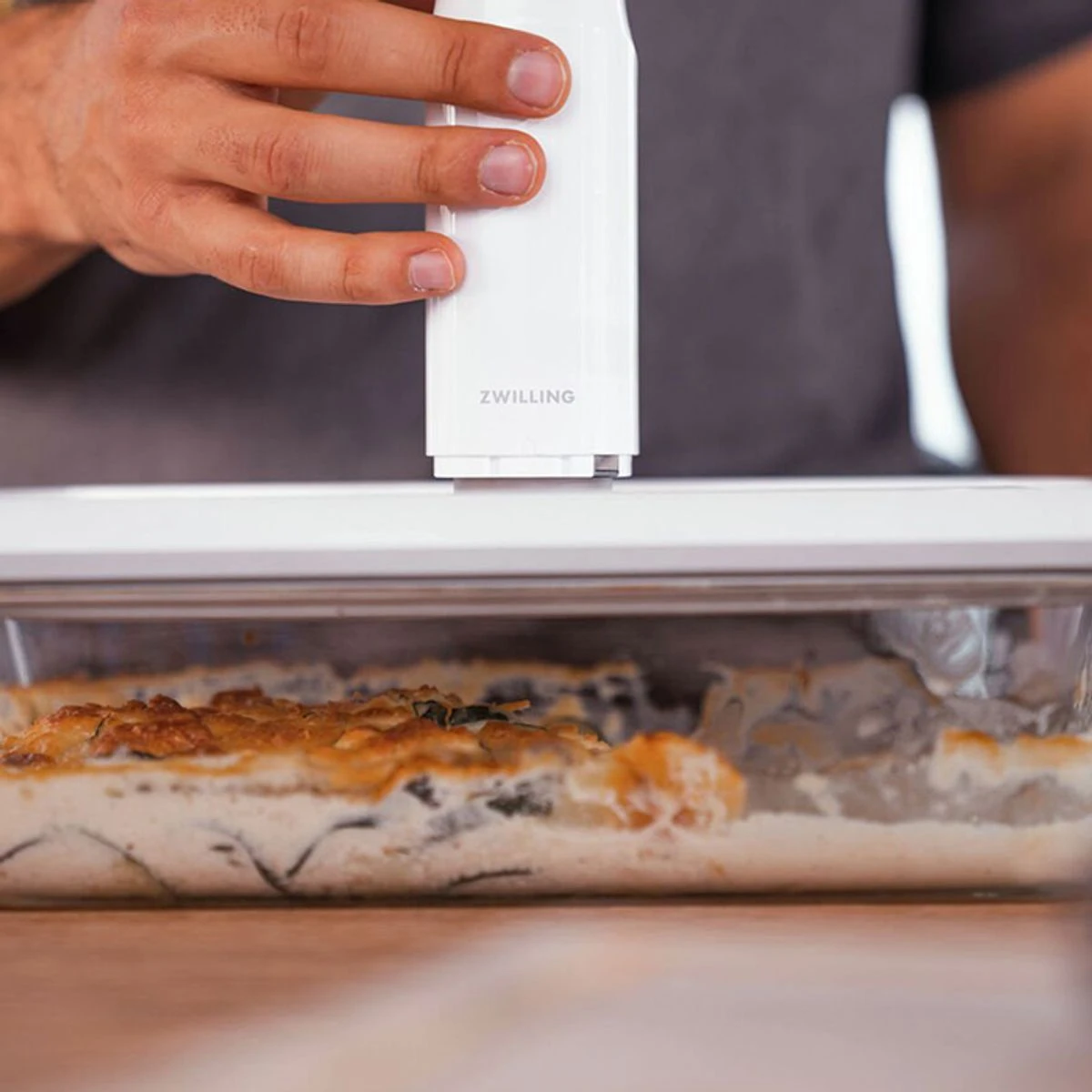 Avec l’application ZWILLING Culinary World, vous pourrez toujours suivre l’évolution de vos aliments conservés : Scannez tout simplement le QR code sur les récipients et les sacs sous vide pour recevoir un rappel de la date à laquelle il faut profiter de vos repas ou de votre nourriture.