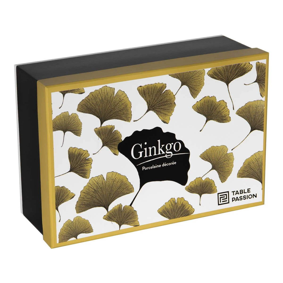 La collection GINKGO lui apporte à souffle de fraîcheur, en la représentant telle une feuille d’or brillante sur de la porcelaine blanche et lisse.