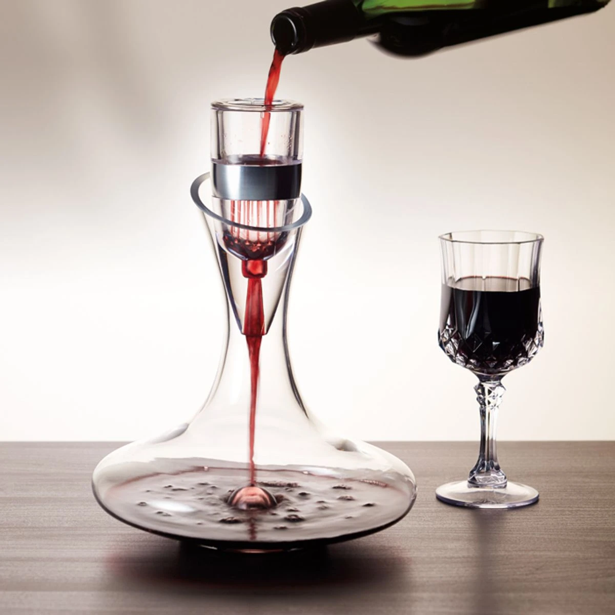 Placez l’aérateur dans la partie supérieure de votre carafe et versez doucement votre bouteille.