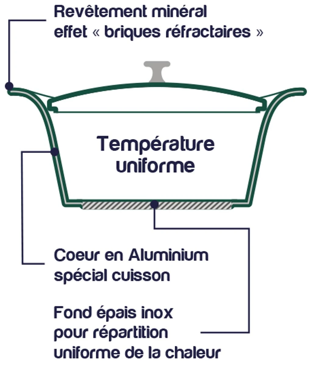4 fois plus légère que les cocottes en fonte traditionnelle, elle offre une répartition uniforme de la chaleur.
