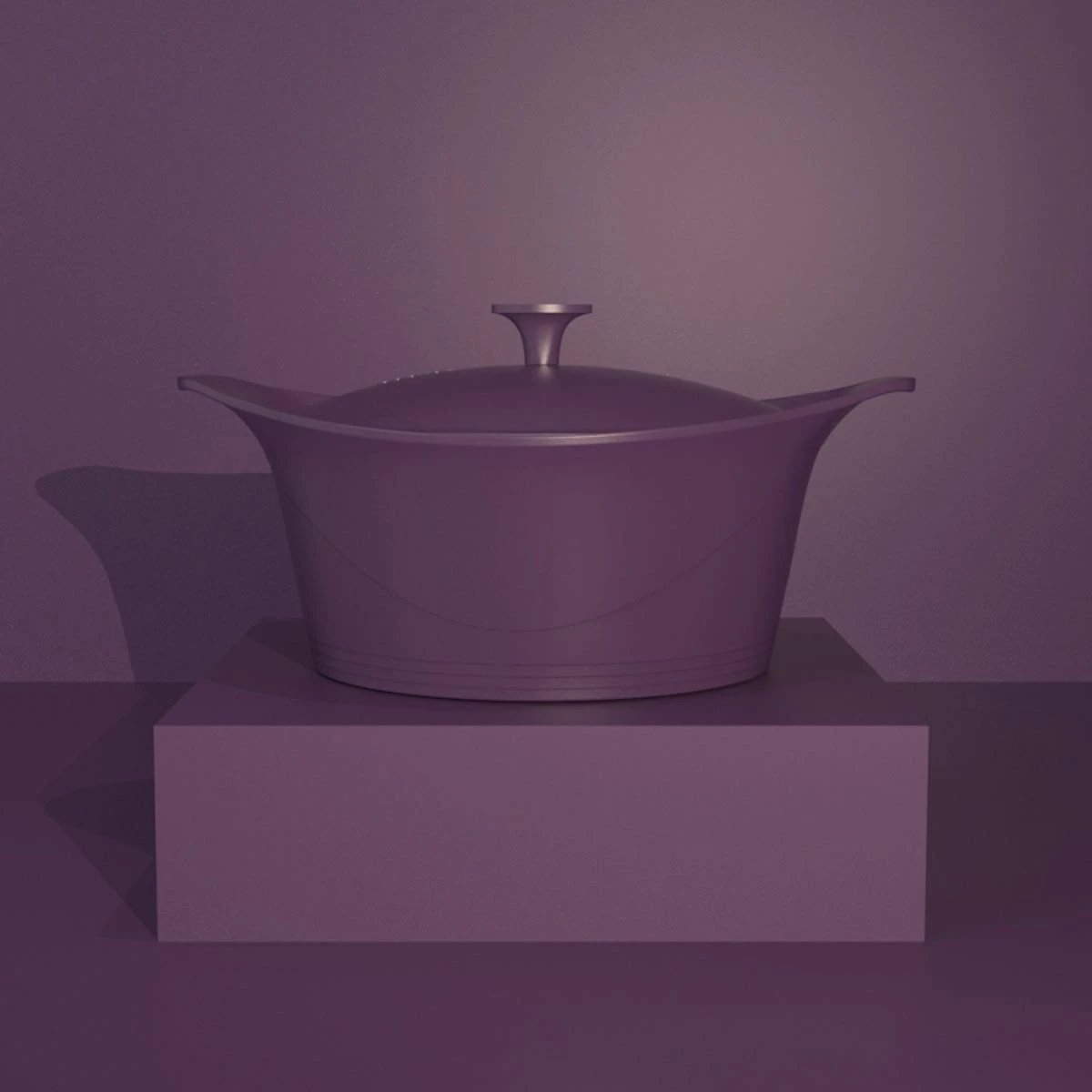 La silhouette de cette incroyable cocotte ronde avec ses poignées intégrées, lui confère une forme ovale, élégante et élancée :