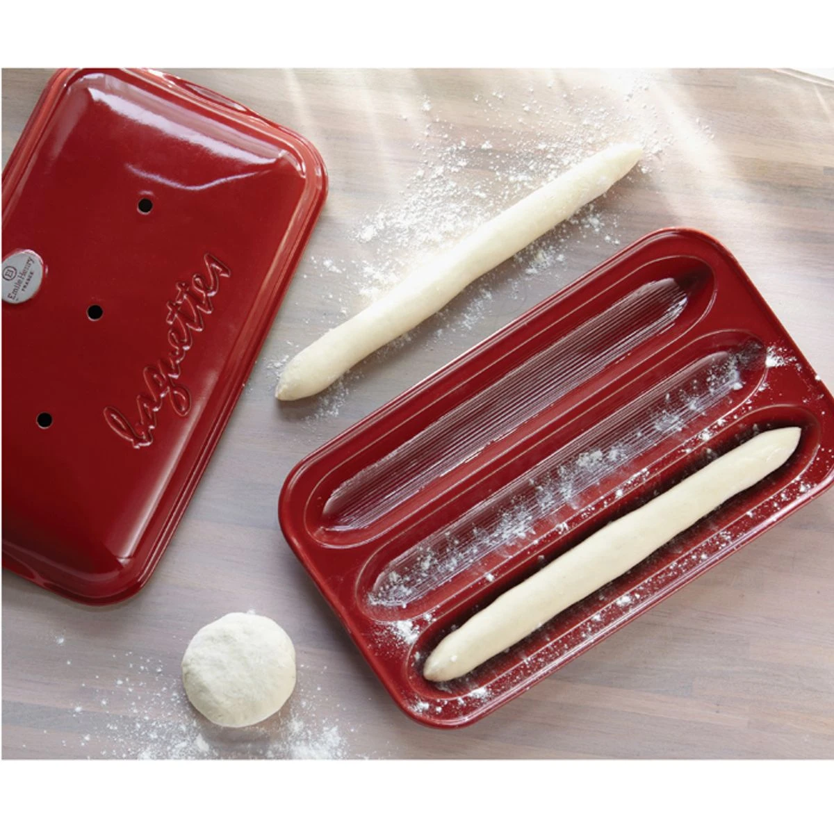 Le coffret contient 1 moule à 3 baguettes, 1couvercle, 1 livre de recettes