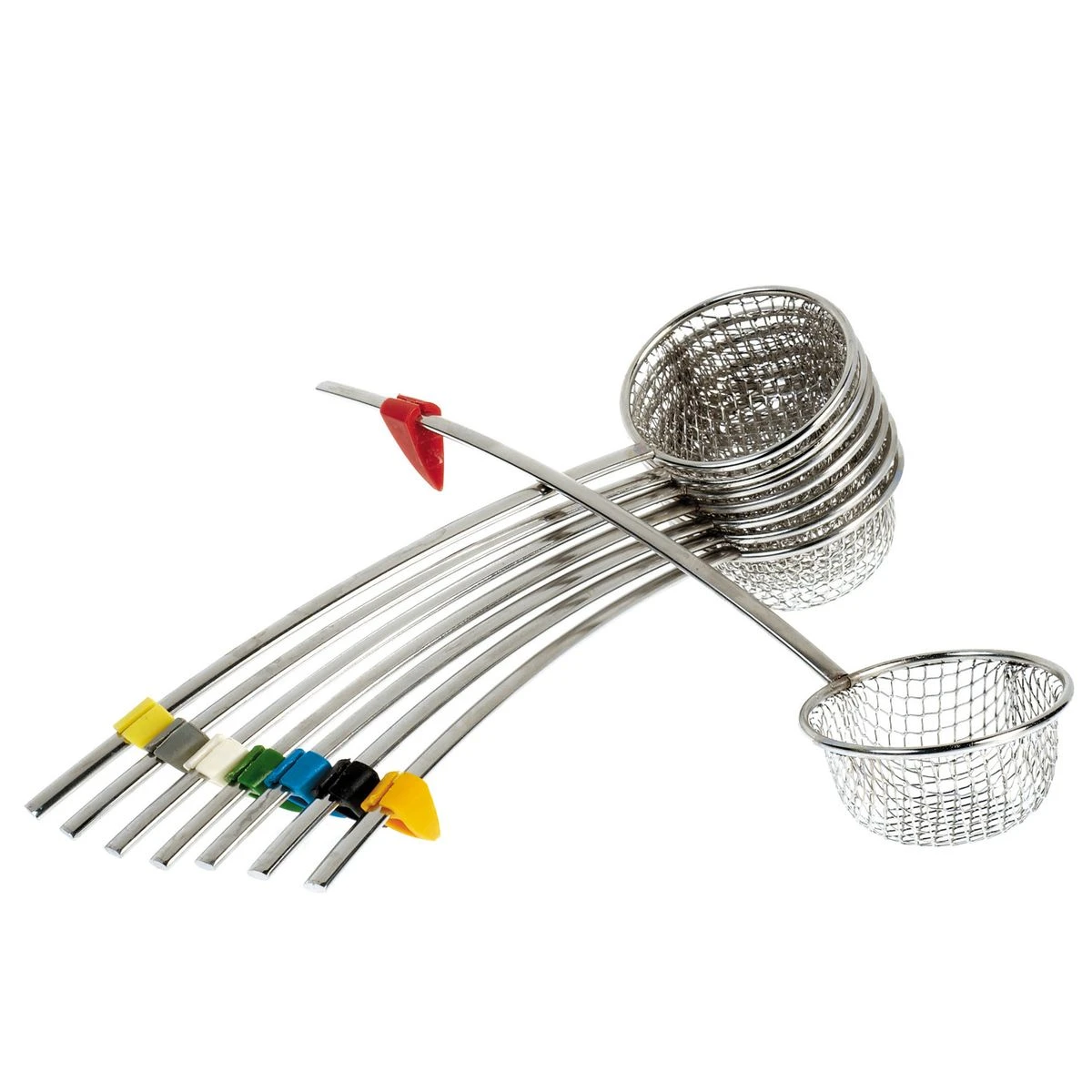 Les louches ont un petit ergot de couleur qui permet de les différencier mais qui évite aussi aux louches de tomber dans le récipient.
