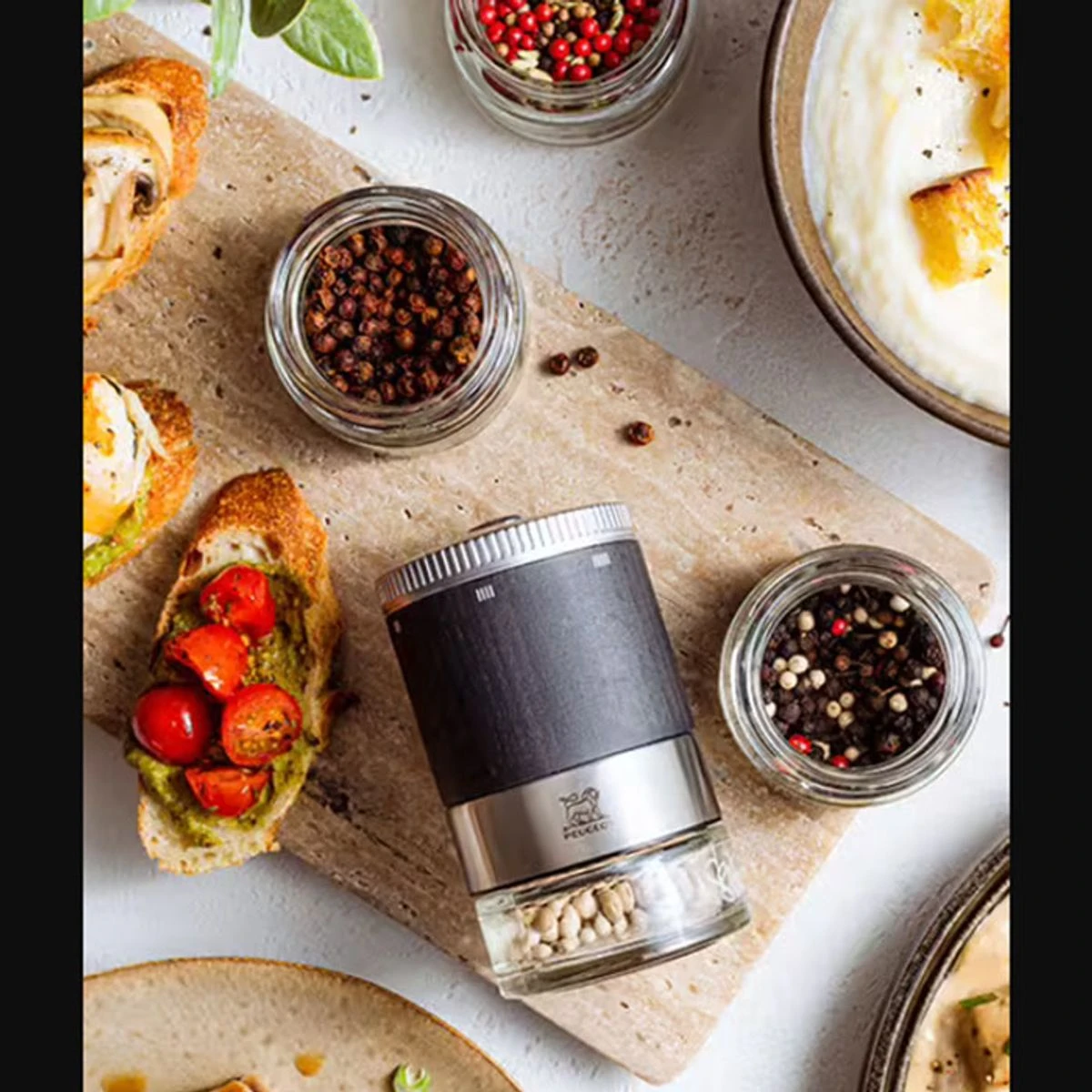 Le mécanisme est adapté aux poivres : noir, blanc, vert et aux baies roses si elles sont mélangées à l’un de ces 3 poivres (maxi 15 % de baies). Il convient également à la coriandre.