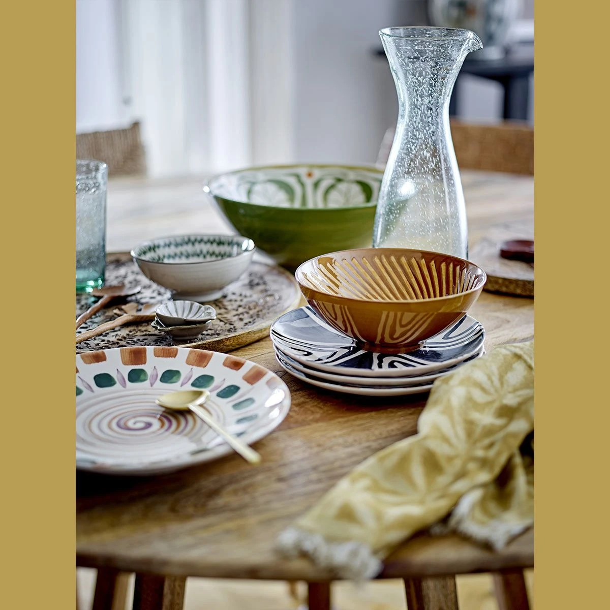 Le verre présente de nombreuses petites bulles à l’intérieur même du verre et une structure inégale, signature du design Manela, rendant chaque pièce unique.