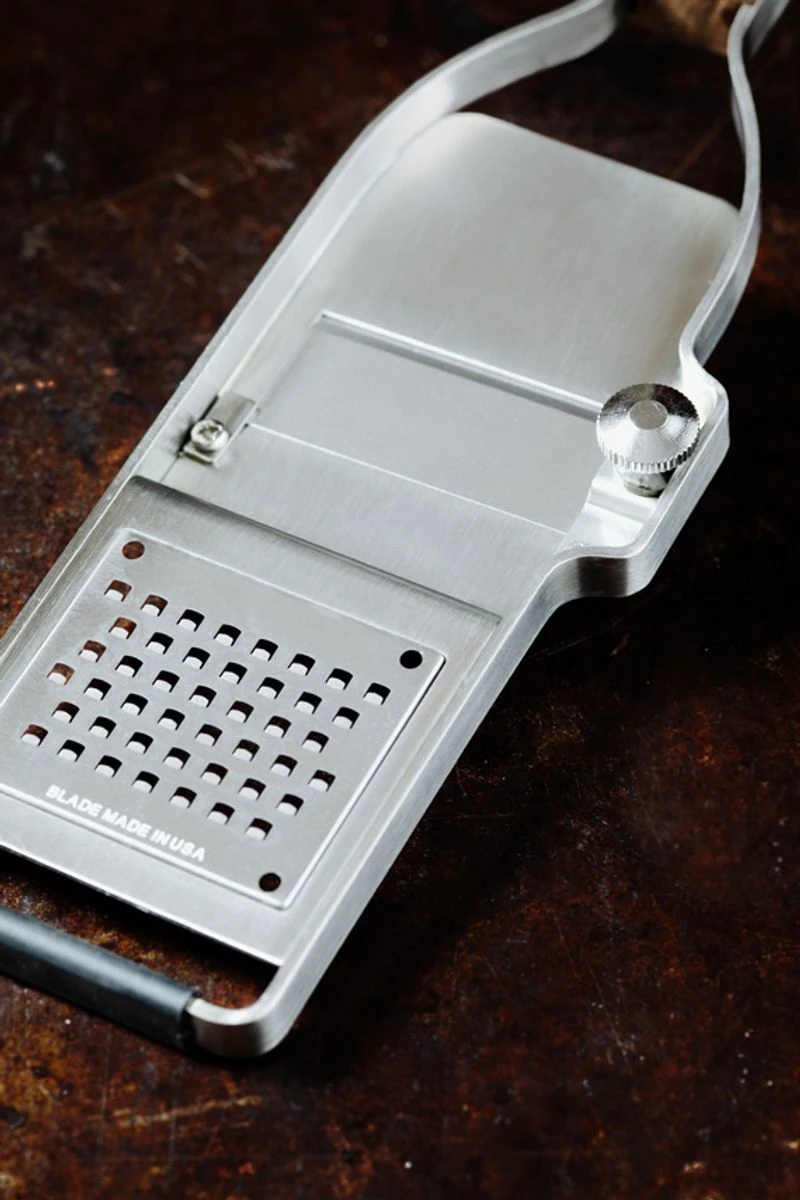 Cet accessoire est également adapté pour les champignons, l’ail, les radis, les fraises, le chocolat, les fromages à pâtes dures…
