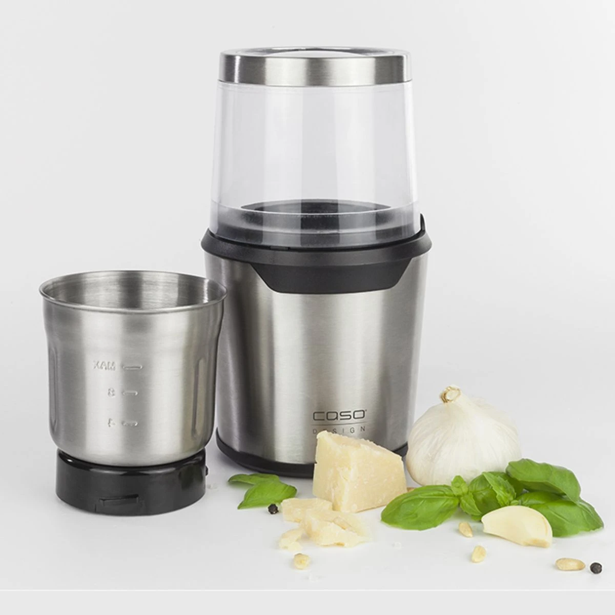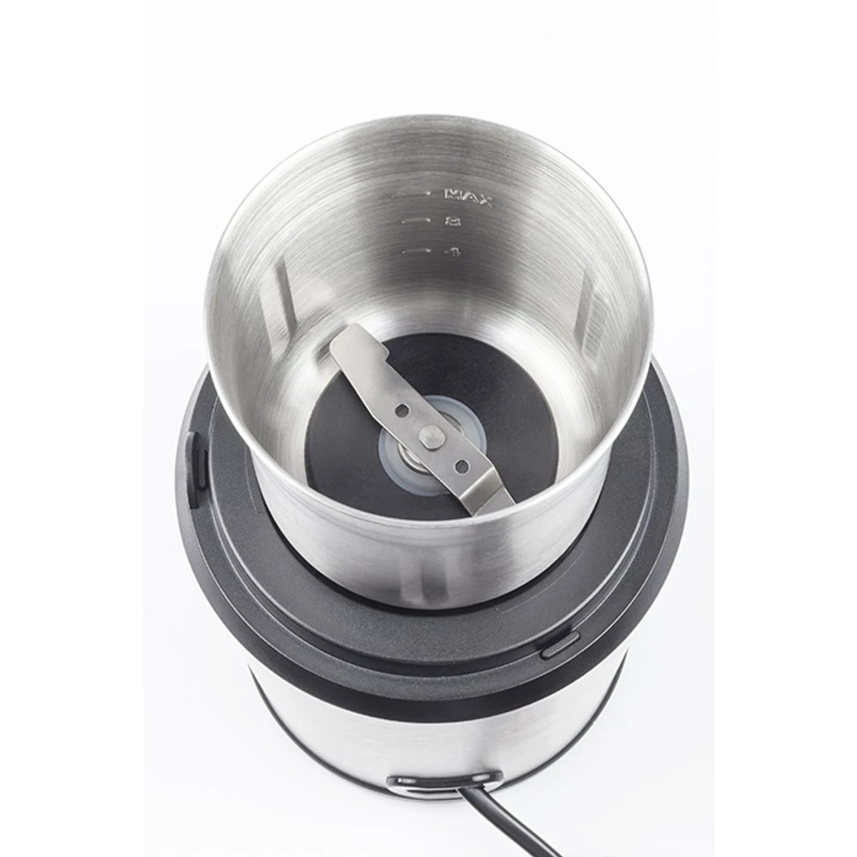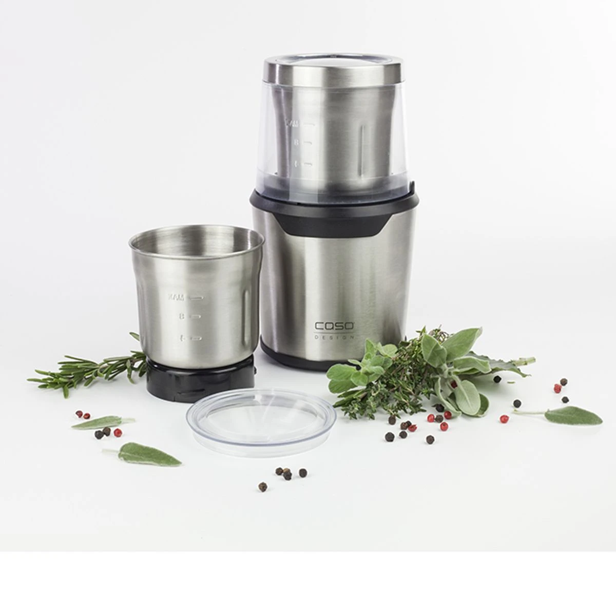 – Récipient avec un couteau en acier inoxydable à 2 lames : parfait comme moulin à café, pour les herbes séchées / épices.