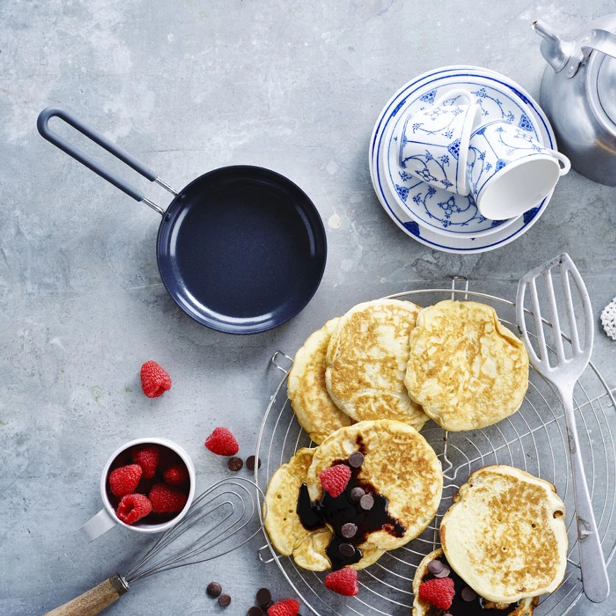 Crêpes, pancakes, blinis, hamburgers, oeufs au plat ou petite pièce de viande individuelle.