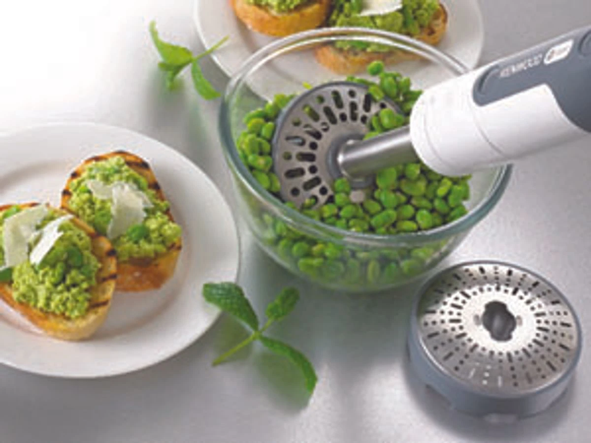 Cette version est dotée d’un pied extra large, parfait pour écraser rapidement à même la casserole, et réaliser facilement les purées, tantôt délicates, tantôt fermes, selon la grille utilisée (petits trous ou gros trous).