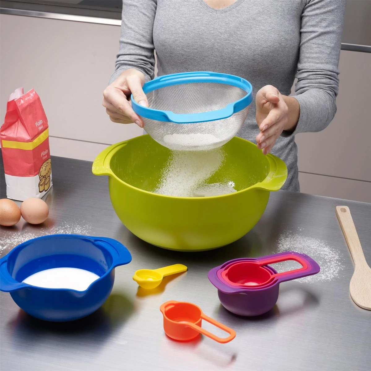 9 accessoires indispensables dans une cuisine, parfaitement empilables.