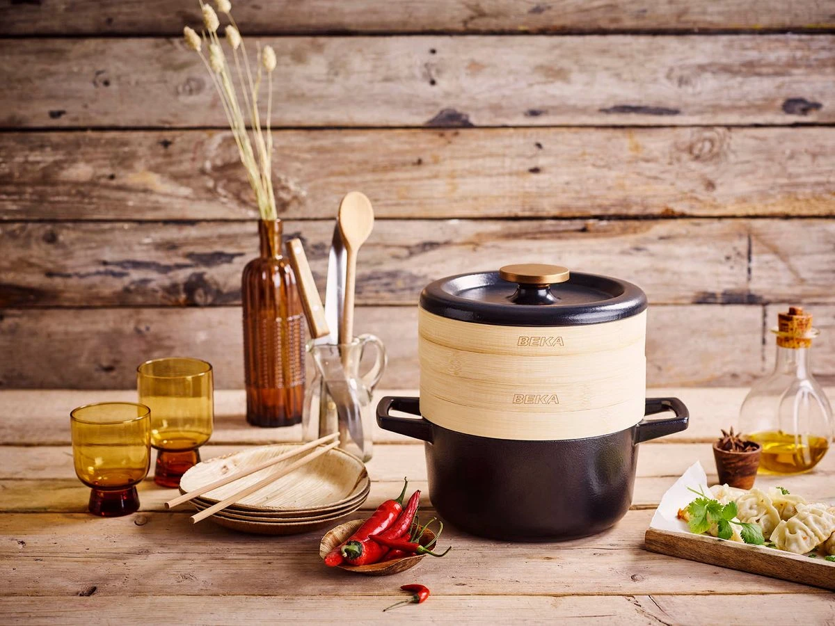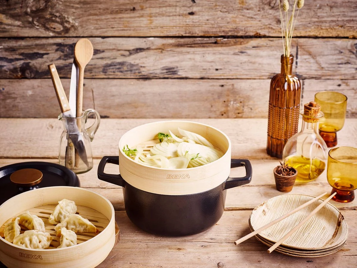 Ajouter les paniers en bambou et transformer votre cocotte en authentique cuit vapeur.