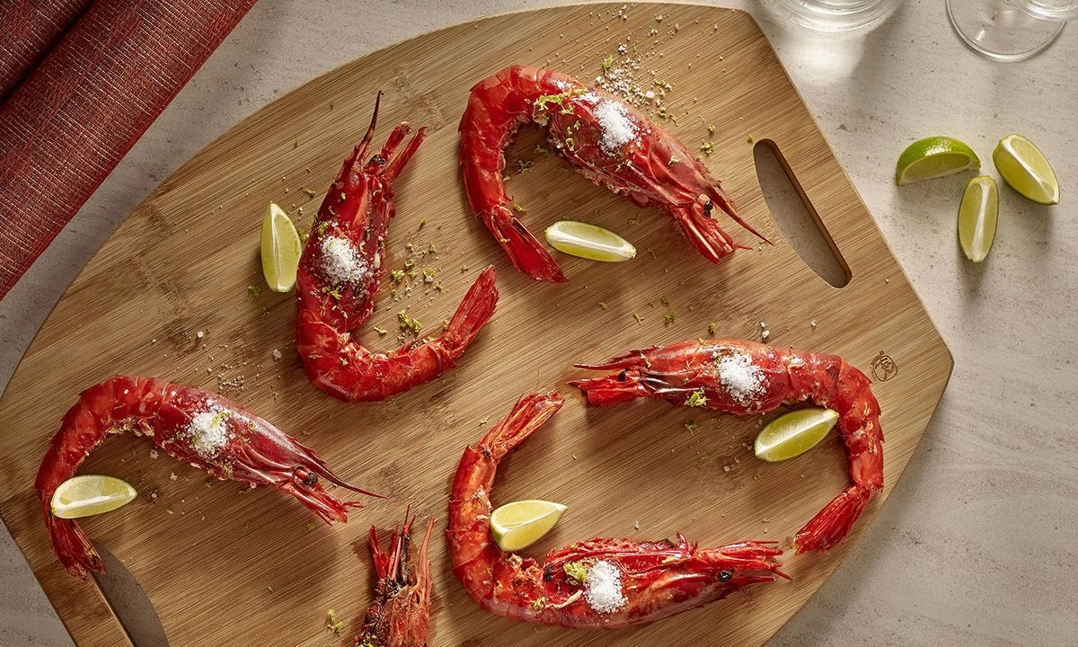 GAMBAS CARABINERO, FLEUR DE SEL AUX AGRUMES, HUILE D’OLIVE – recette de Forge ADOUR