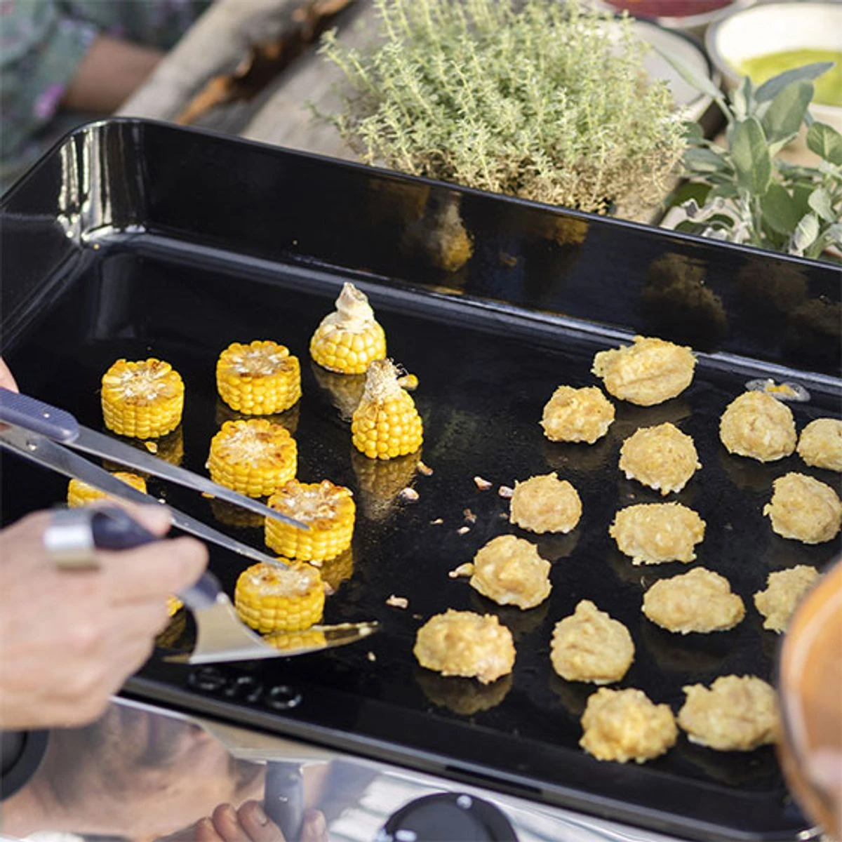 – Plaque de cuisson en fonte d’acier émaillée d’une épaisseur de 7 mm, à rebords hauts moulés anti projection