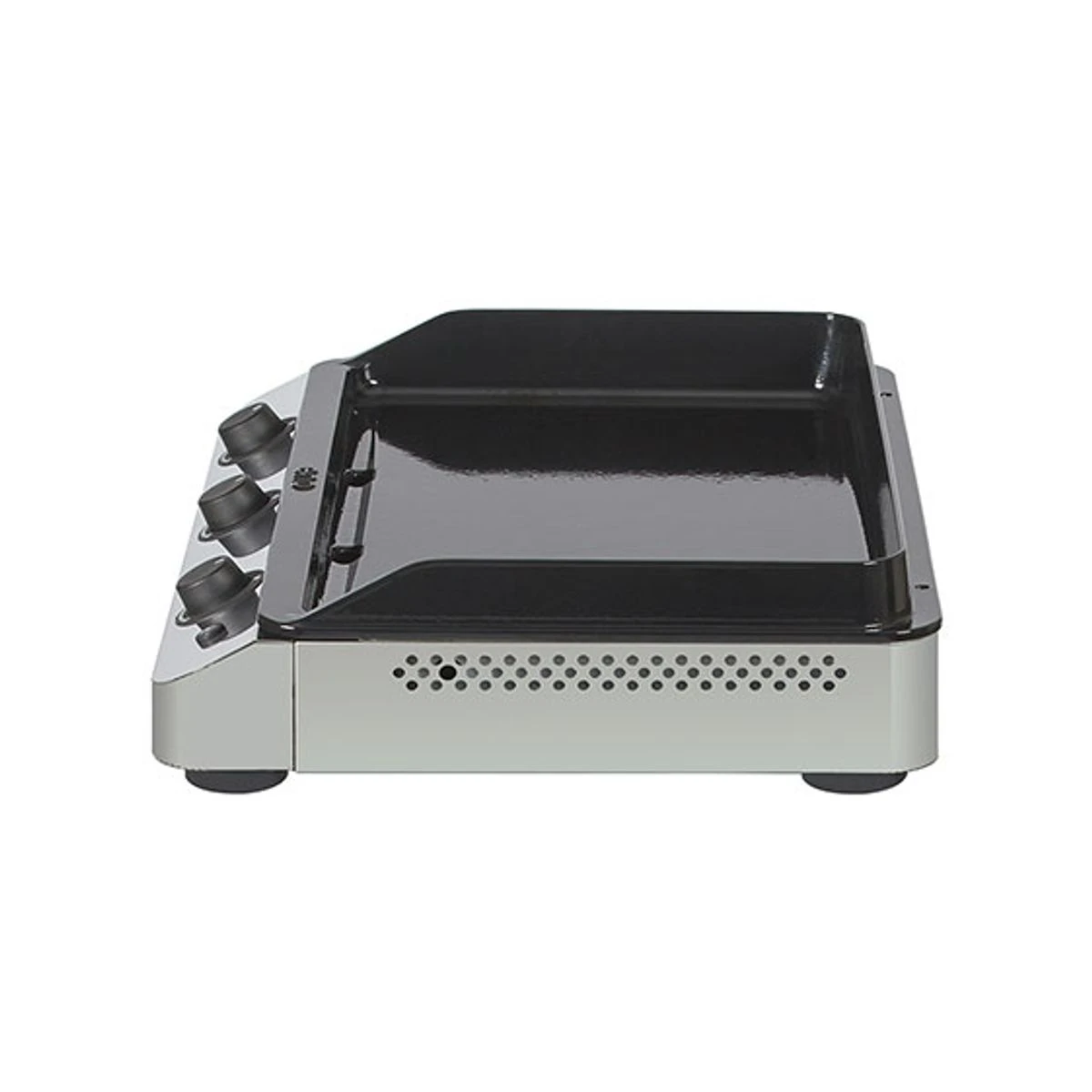 Plancha d’usage extérieur qui s’utilise posée ou encastrée sur un chariot.