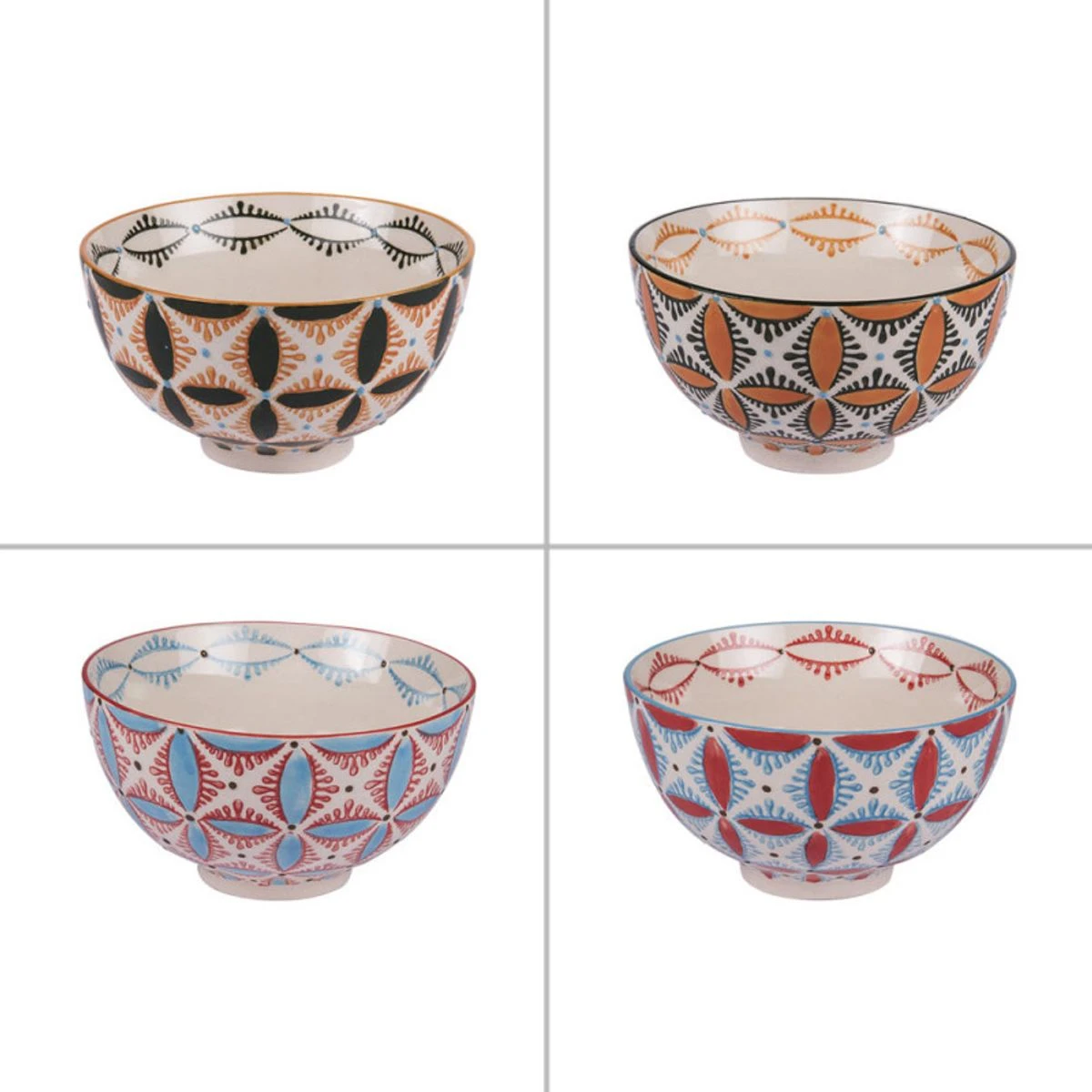 Coffret de 4 Coupelles de 11 cm en grès entièrement peint à la main.