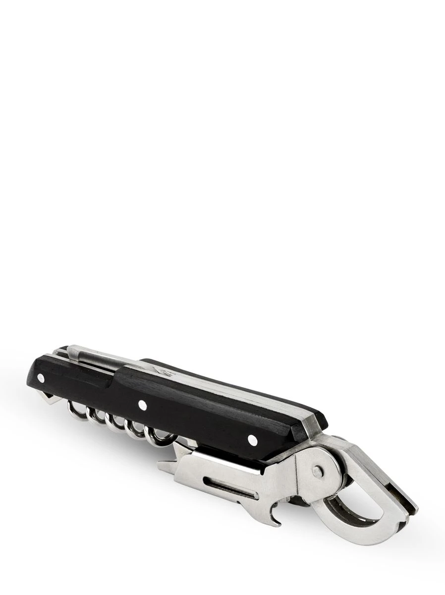 Ce tire-bouchon manuel est muni d’un coupe-capsule et d’un décapsuleur intégrés.