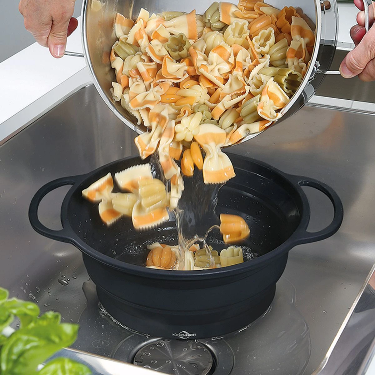 Cette passoire peut se déplier en 2 hauteurs en fonction du volume à égoutter jusqu’à 10.5 cm